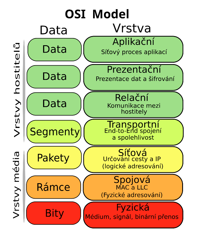 Model se dělí do sedmi vrstev, od nejnižší (až hardwarove) po nejvyšší a nejvíce abstraktní uroven